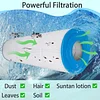 This filter efficiently removes hair, leaves, dust, sediment, sand, etc.