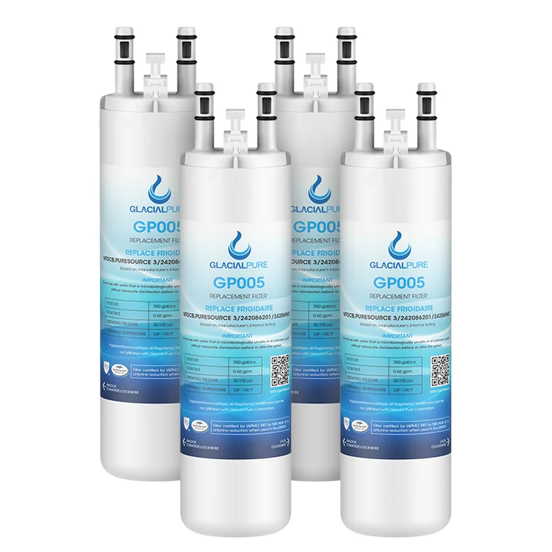 The GlacialPure GP005 is a compatible filter replacement for the Frigidaire WF3CB - PureSource3. It fits Frigidaire, Electrolux, Sears, and Kenmore refrigerators with a slide-out filter cartridge located in the back of the refrigerator compartment.